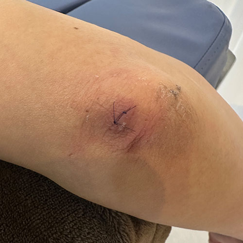 今回は二の腕とブラ横のため、カニューレの挿入部位は“臂(ひじ)”と“わき”の2ヶ所でした。