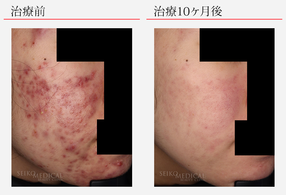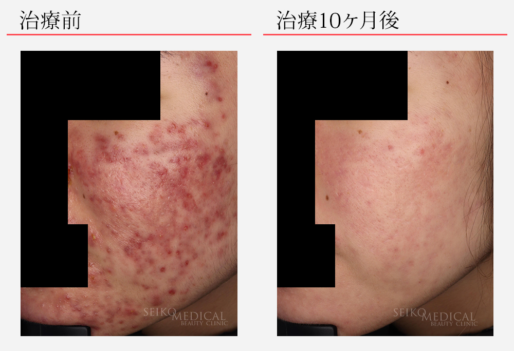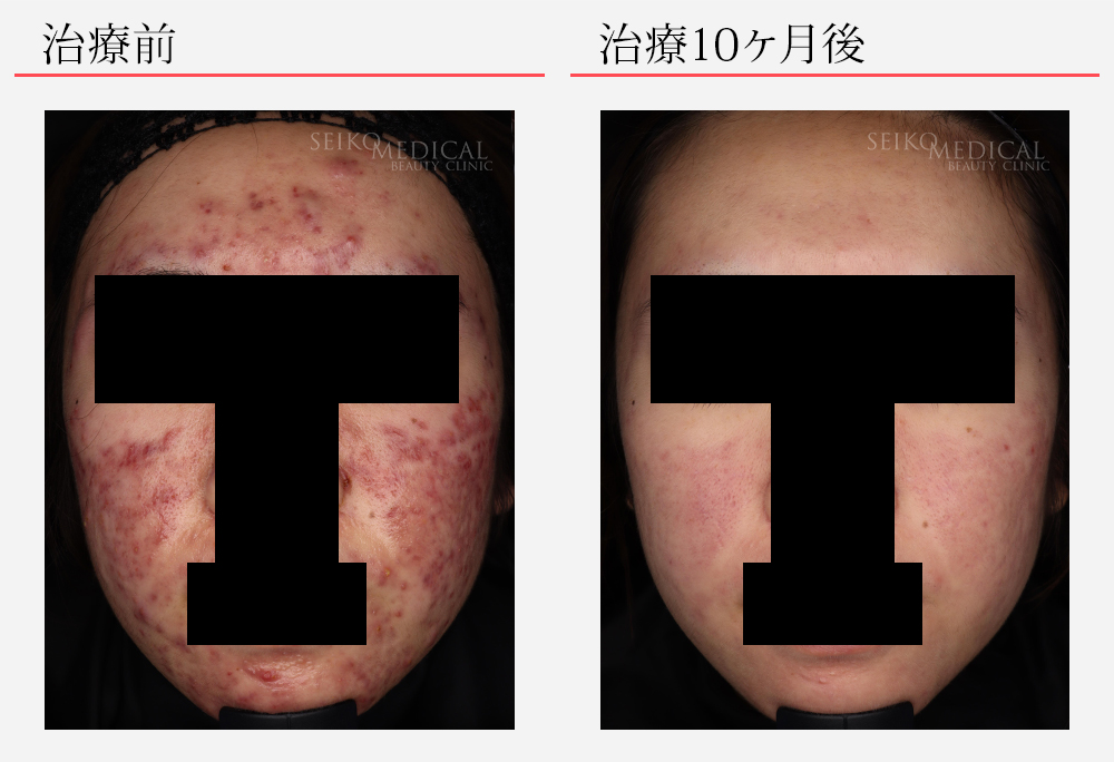| 治療名 | イソトレチノイン(ロアキュタン)内服+LLフェイス一部×3回+スキンケア見直し |