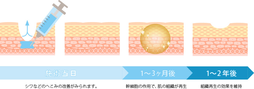 脂肪注入は、患者様ご自身から採集した脂肪を注入し、凹みを改善したりふっくらさせる治療です。