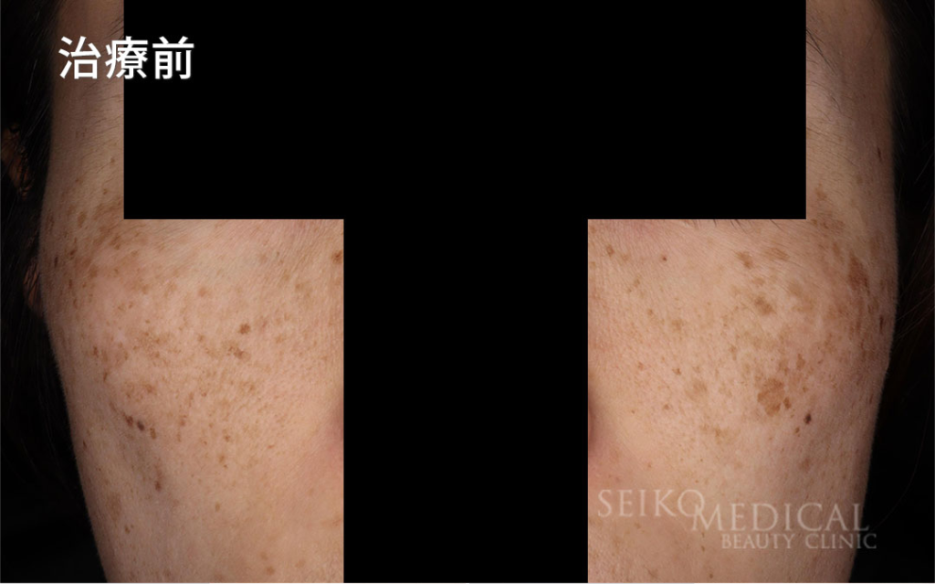 日光性色素斑・肝斑・AMDなど様々な色素斑が混在している症例です。